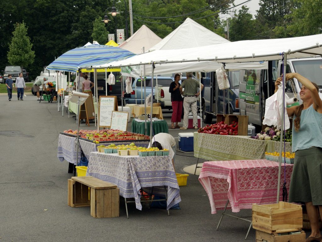 Mehr als sechzig Jahre später sind wir im August durch Purcellville gekommen, an einem sehr warmen Mittag, als gerade der “Farmers Market” auf dem Parkplatz beim alten, stillgelegten Bahnhof aufgebaut wurde. Farmer und Händler aus der Region, Gemüse, Obst, Honig, ein wenig Kunsthandwerk, das Programm der kleinen Wochenmärkte, wie wir es auch kennen. An einem Stand hat eine junge Gärtnerin ihre Äpfel und Tomaten handverlesen drapiert und die Fülle der roten Paprika besonders betont, die sich aus ihren umgekippten Kisten auf die einfachen Verkaufstische ergossen. Die rote Paprika, die man durchaus als solche beinahe im Zentrum von Gorkys Bild erkennen kann. Virginiasommer am Crooked Run.